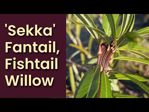 The Fantail Willow Tree (Salix udensis 'Sekka') is a unique deciduous shrub or small tree primarily cultivated for its unusual flattened stems. This phenomenon, known as fasciation, results in wide, contorted branches that resemble ribbon-like fans, providing significant structural interest in the landscape, especially during winter months. In early spring, before the leaves emerge, the reddish-brown stems are adorned with silky, silver-gray catkins that are valued in floral arrangements, both fresh and dried. This willow grows well in full sun and prefers moist to wet soil conditions, making it suitable for rain gardens or near water features.